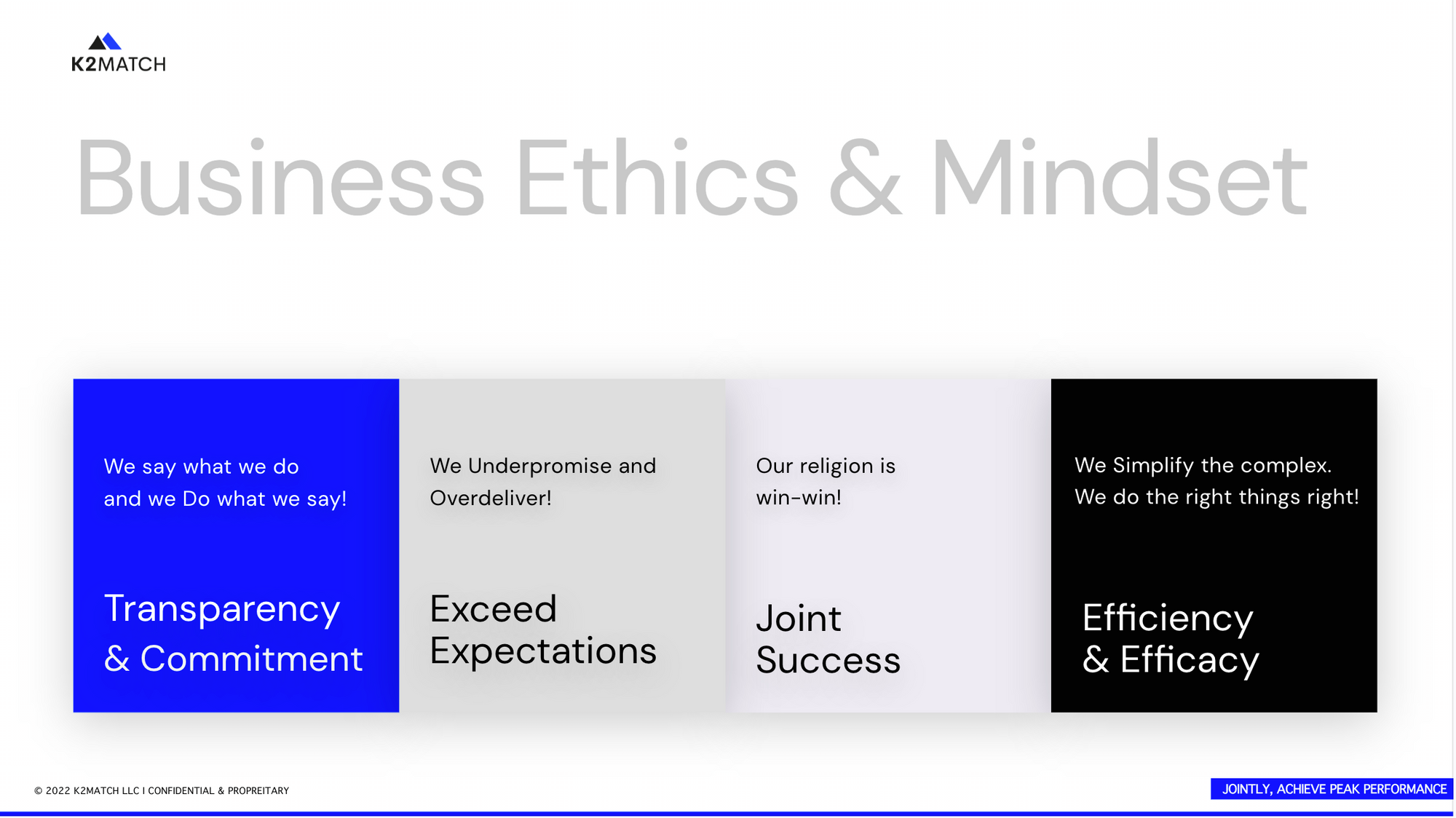 Besides a professional team, the right business ethics and mindset is the key to success. Therefore, all K2Match partners are carefully selected.