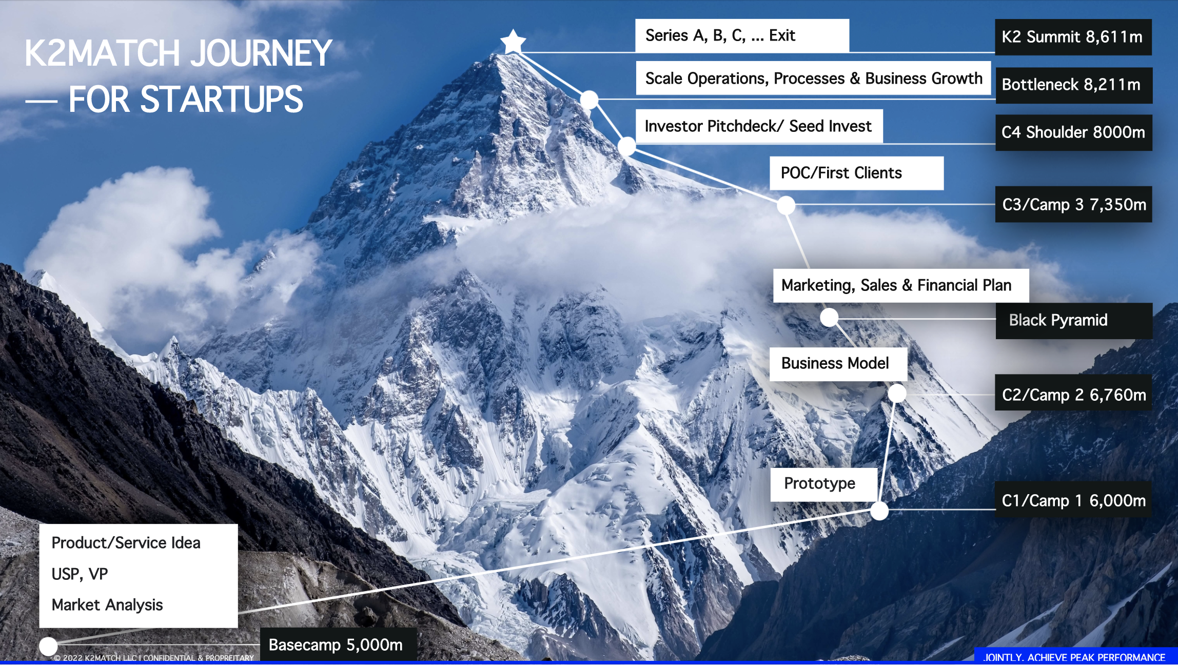 K2MATCH is the combination of K2 and MATCH. K2 is the second highest mountain on planet earth, but even more difficult to climb than Mount Everest. Match stands for matching clients' teams with top expert(s) team(s) to be able to climb K2.