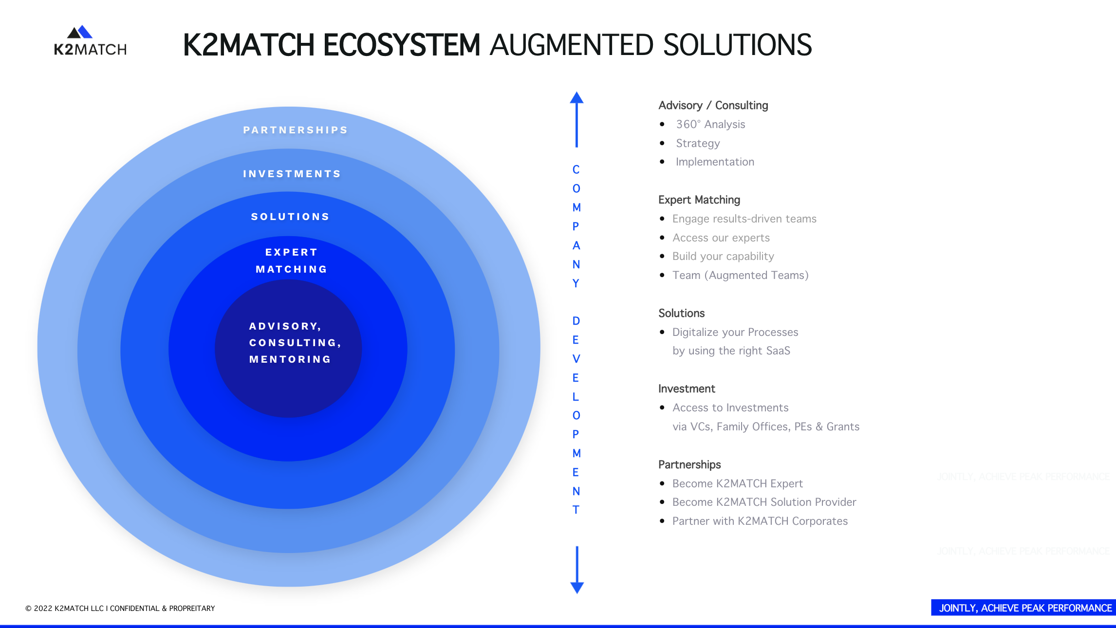 Our K2MATCH Ecosystem helps clients & partners who want to be in a healthy steady growth mode by matching the clients with carefully selected solution partners, experts and investors.