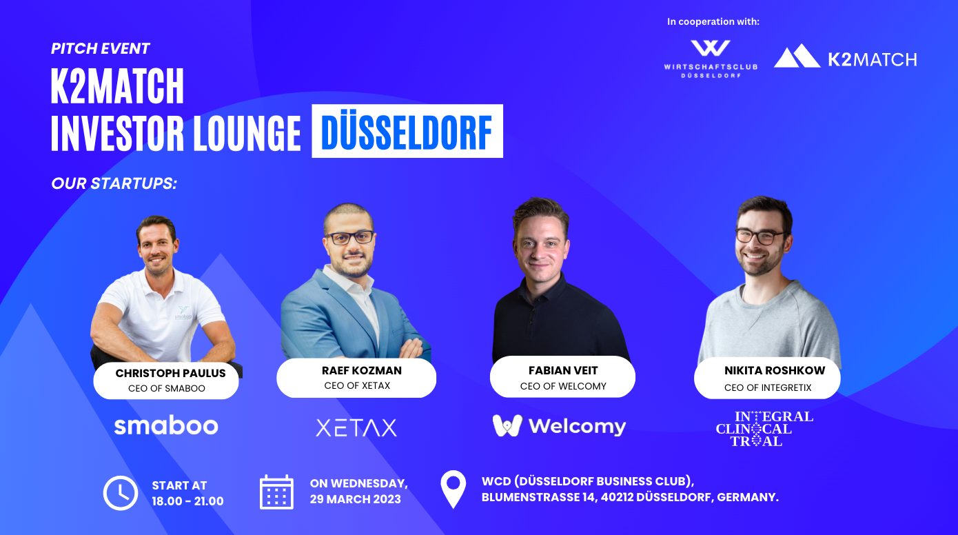 Start der K2MATCH Investor Lounges in Kooperation mit dem WCD am 29. März 2023 im Wirtschaftsclub Düsseldorf