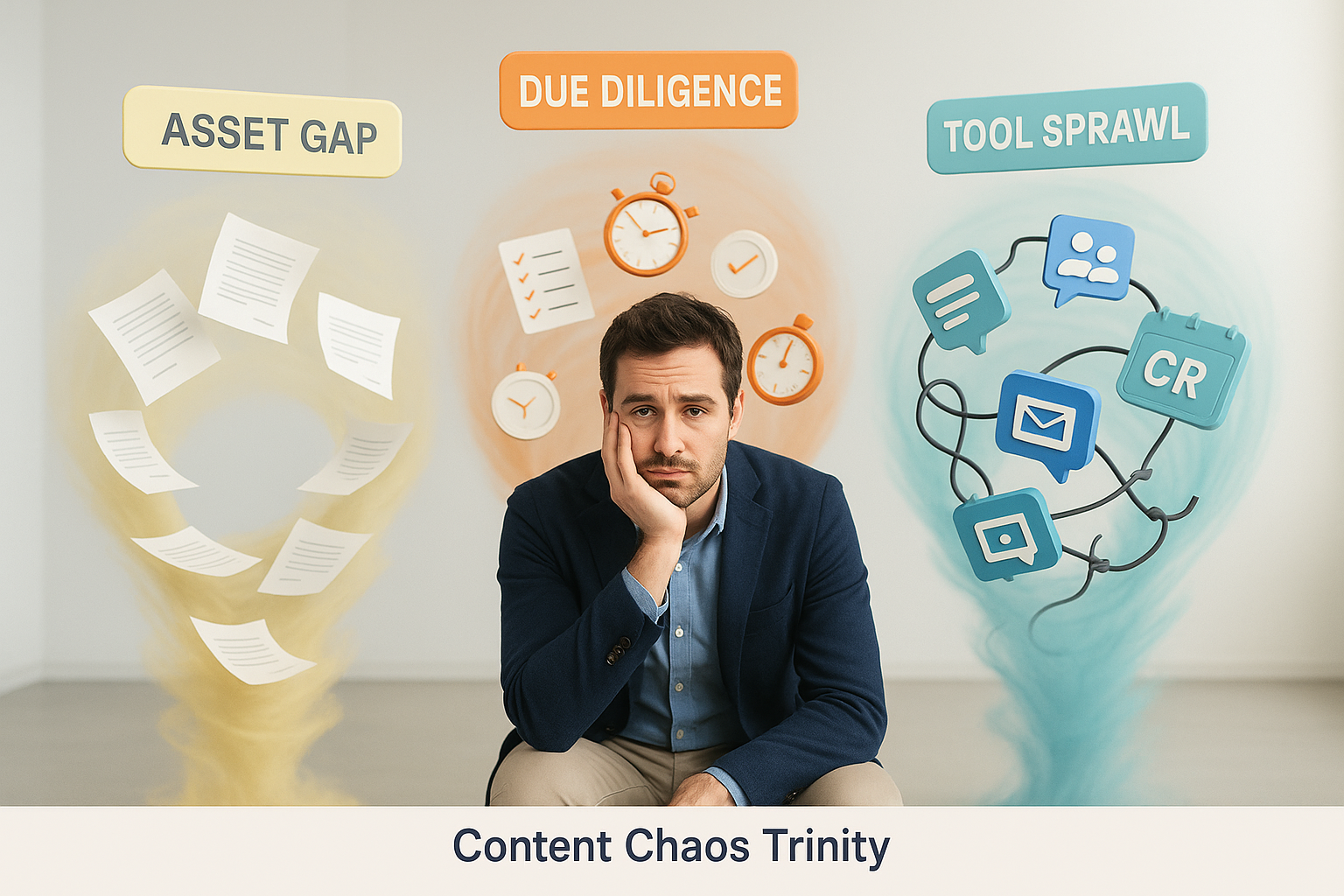 The result is brutal: deal cycles stretch 40-60% longer due to content gaps, customer acquisition costs increase as sales teams can't find the right materials for each prospect, and manual reporting consumes disproportionate time that should be spent selling.